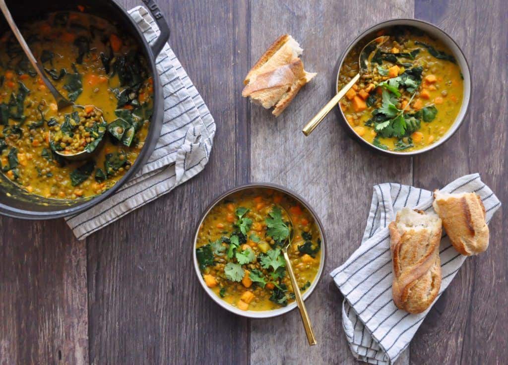 Few foods do a better job of warming you to your core than a hearty lentil soup. Lentils are a great ingredient for entertaining: They’re healthy, they will leave your guests feeling full but not weighed down, and they’re affordable and easy to cook. This version uses toasty Indian spices and creamy Goya coconut milk, plus kale and sweet potato for extra nutritional oomph. This is a great option if you have some vegan game day guests.