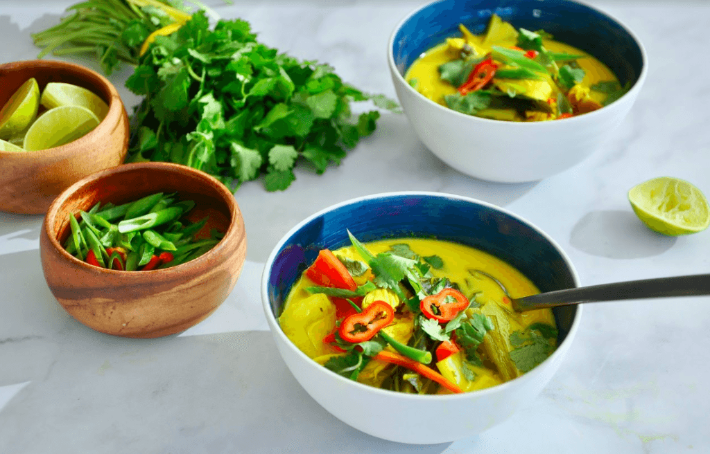 Don’t let just the football players work out this Sunday. You can, too, with Goodtaste‘s Thai spin on our ever-popular fat flush soup. This soup has a creamy coconut milk base (which has been proven to help with weight loss) and is scented with turmeric, lime juice, fish sauce, garlic, and a healthy dose of fresh ginger. The garlic and ginger speed up your metabolism while the ground turmeric calms any inflammation. The bulk in the soup comes from lean chicken breasts simmered in coconut milk until tender and juicy, plus a generous amount of fat-flushing vegetables.
